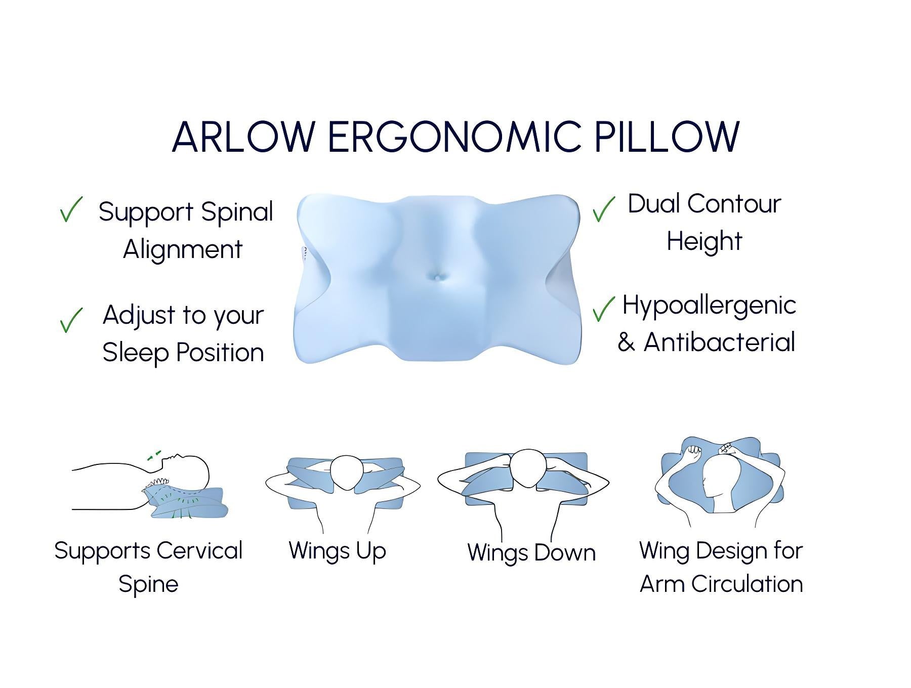Like its name — Arlow, meaning between two hills — our pillow gently supports the neck between two soft rises. Designed to ease pressure and restore natural alignment.